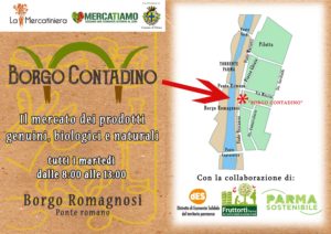 “Borgo Contadino” è una iniziativa di Parma Sostenibile, già promotrice di Mercatiamo e dell’associazione Mercatiniera, con il patrocinio del Comune di Parma e il sostegno del Distretto di Economia solidale di Parma e dei Gruppi di Acquisto Solidali.