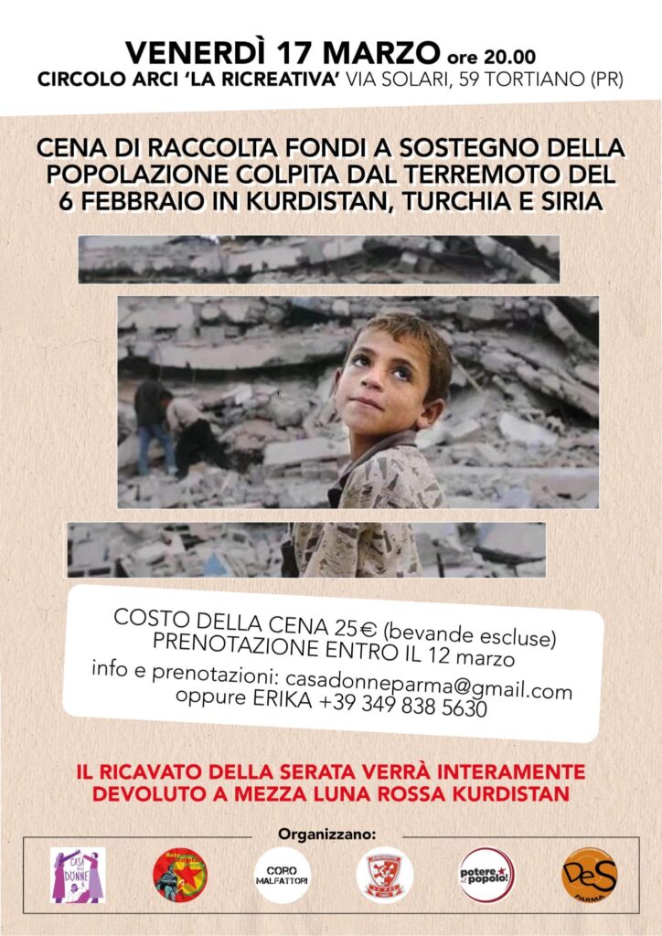 Sos Kurdistan, Parma si mobilita in aiuto dei terremotati